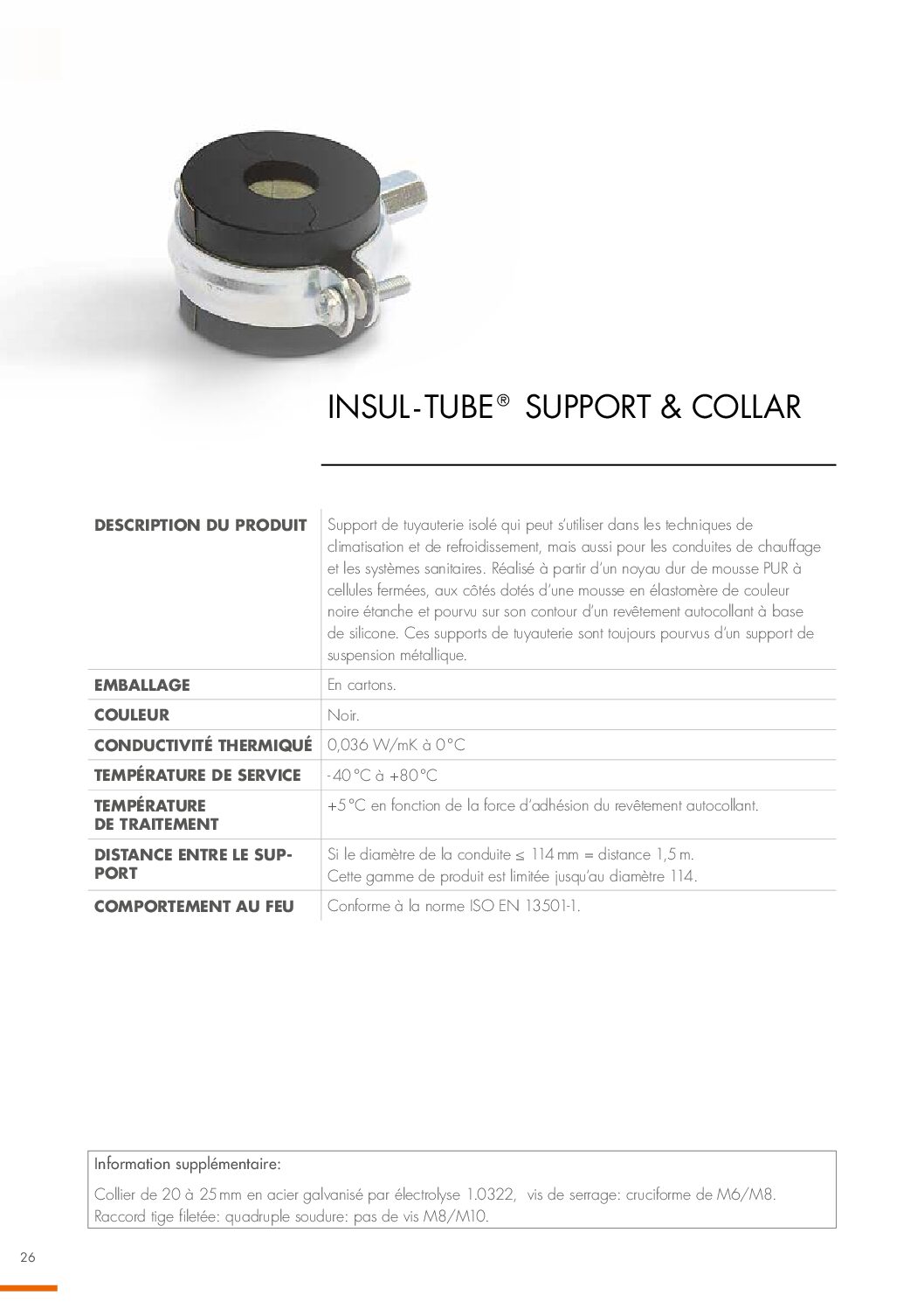 - Le support et la pince INSUL-TUBE permettent une installation sans pont thermique
